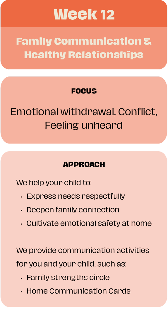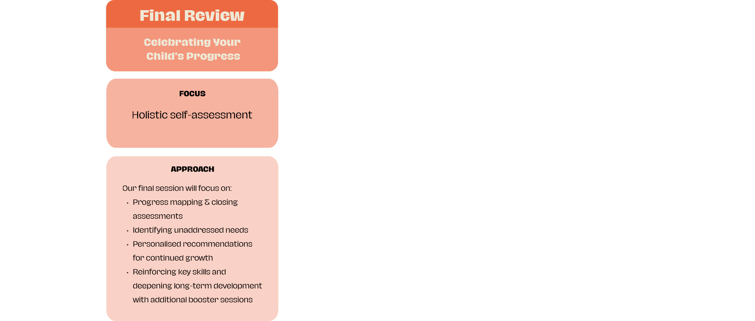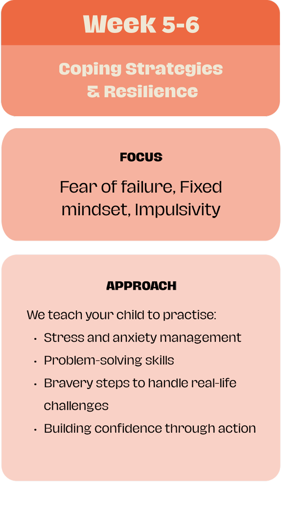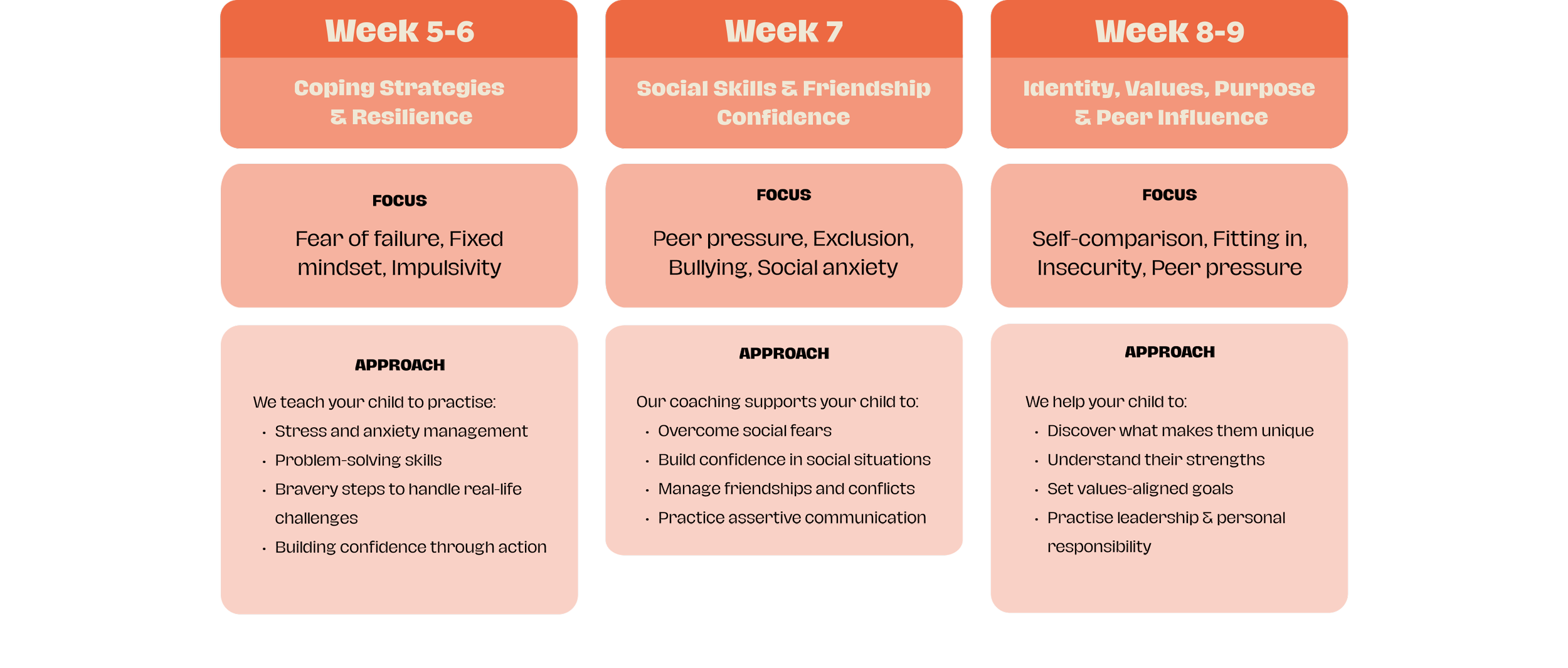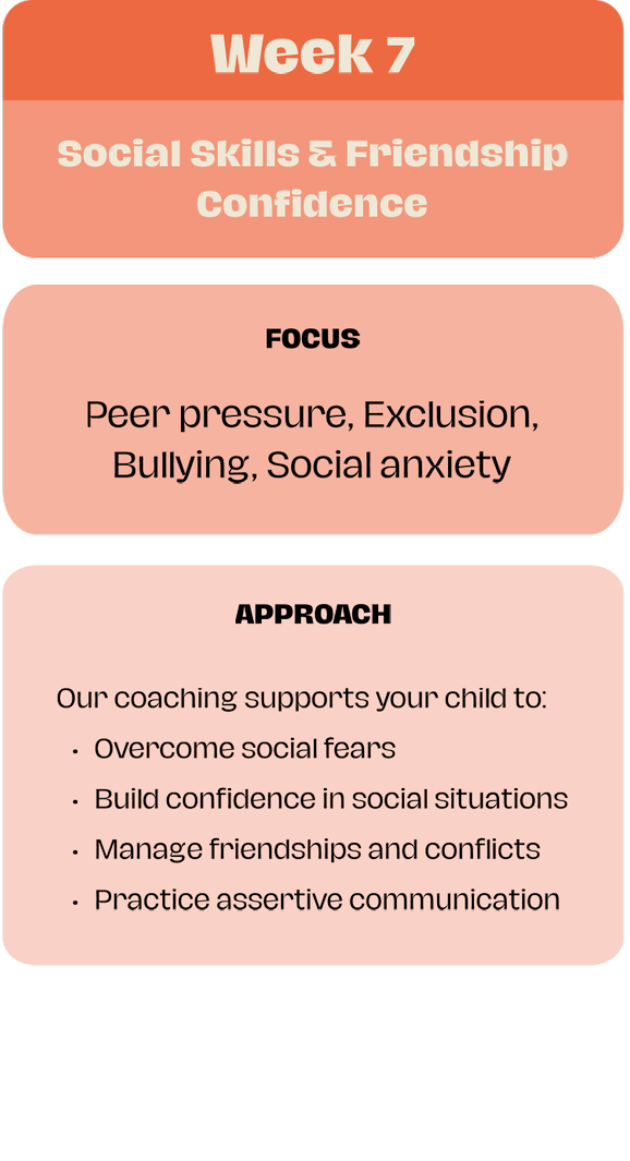 Throughout your child’s programme, we track their progress through personal reflections, coach observations, and parent/teacher feedback. We will adjust the plan together to ensure your child feels safe, heard, and supported so they can become their bravest selves.