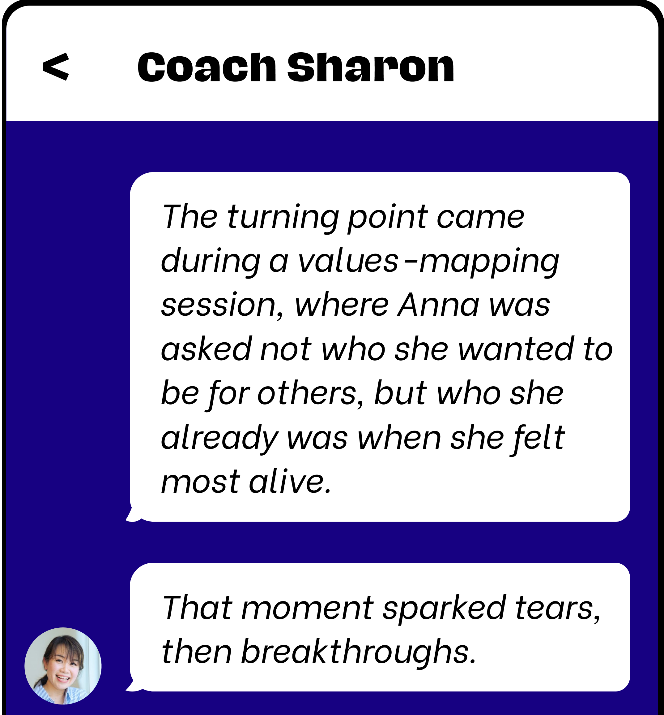 Anna arrived withdrawn, burdened by deep self-loathing masked by perfectionism, and a constant need for approval.